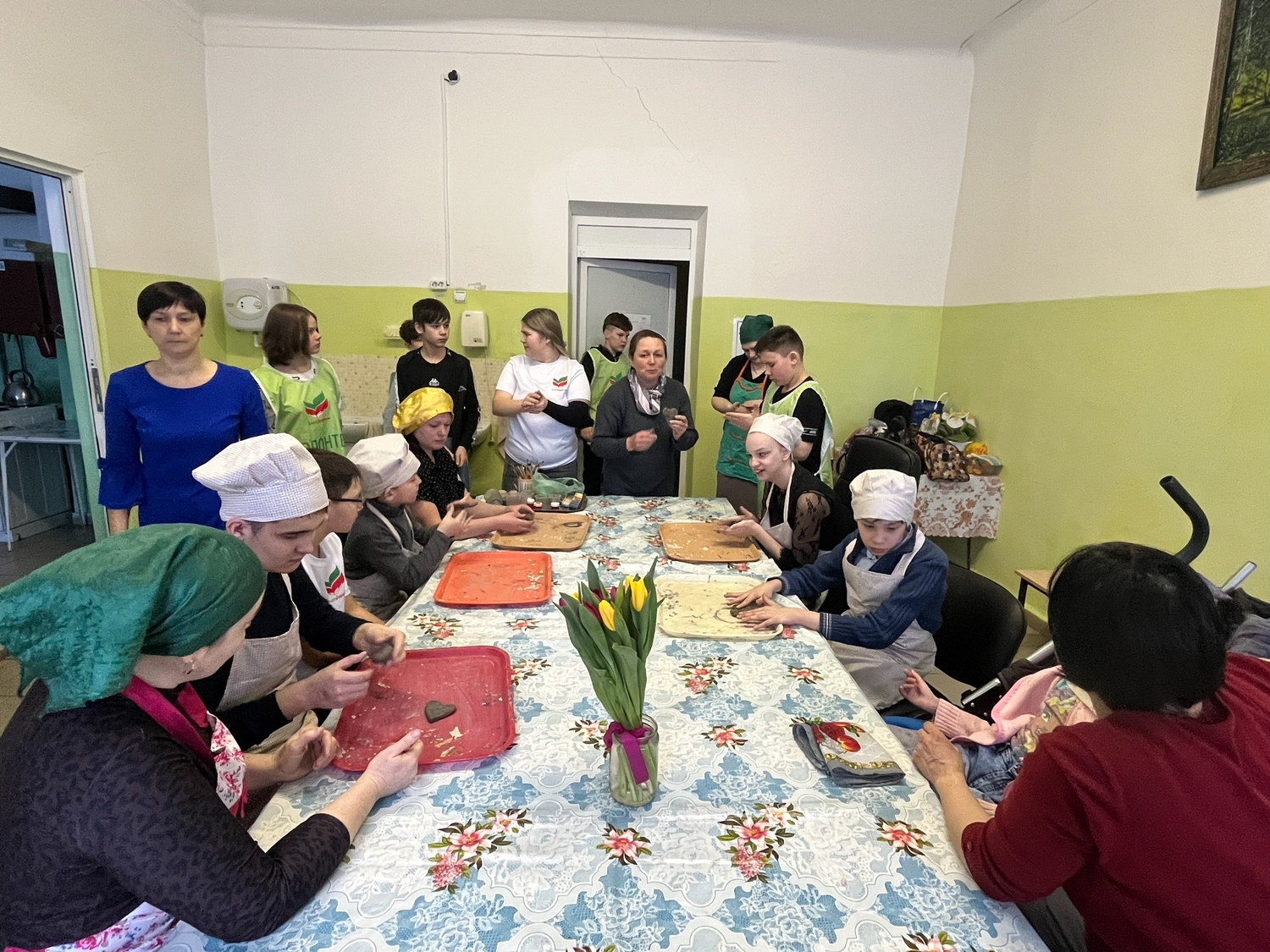 Накануне праздника мы вместе с волонтёрским отрядом «Лига активистов» организовали для участников клуба кулинарный мастер-класс. Под чутким руководством педагога дополнительного образования Галиевой А.Н. дети и взрослые с удовольствием готовили ароматную пиццу, а Гульнара Масхутовна и наши волонтёры провели творческий мастер-класс по лепке. Мероприятие закончилось душевным чаепитием.