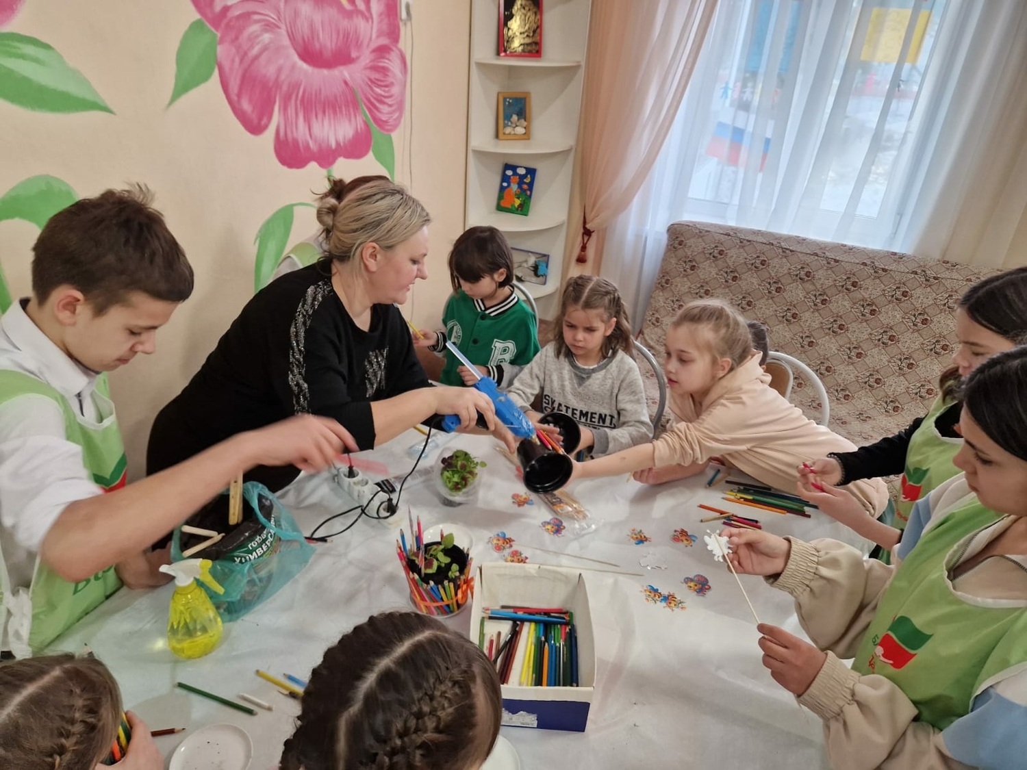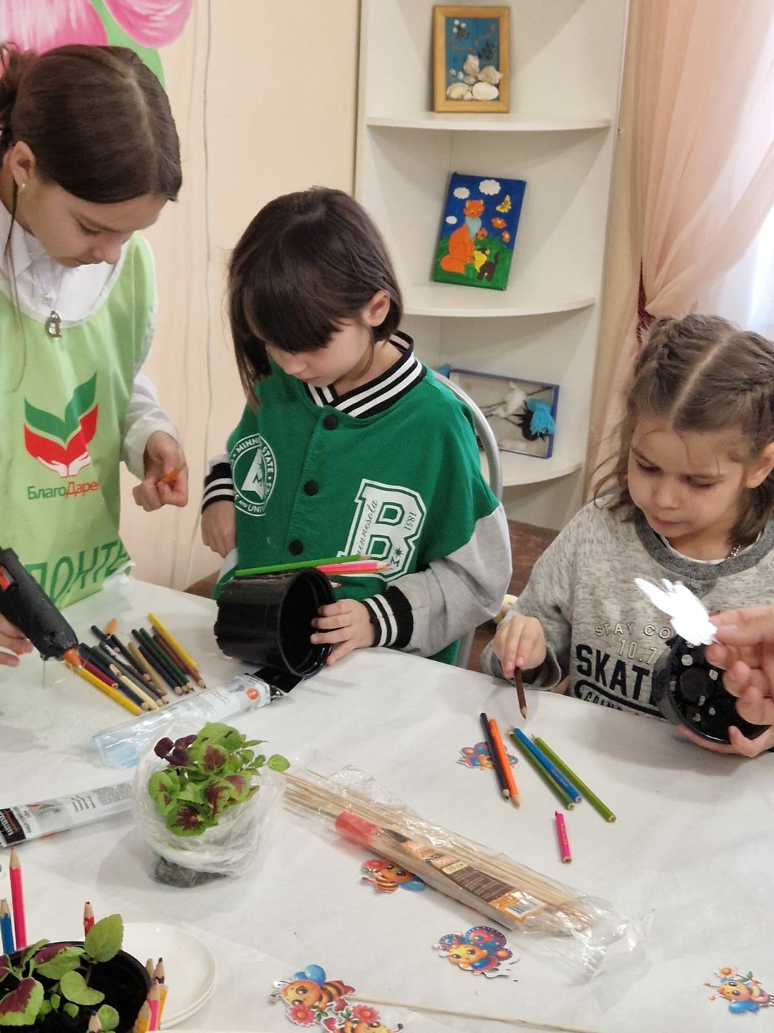 18 марта наш волонтерский отряд «Бригада добрых сердец» провел для воспитанников социального приюта «СемьЯ» особенный экологический мастер-класс «Карандаши в горшки».