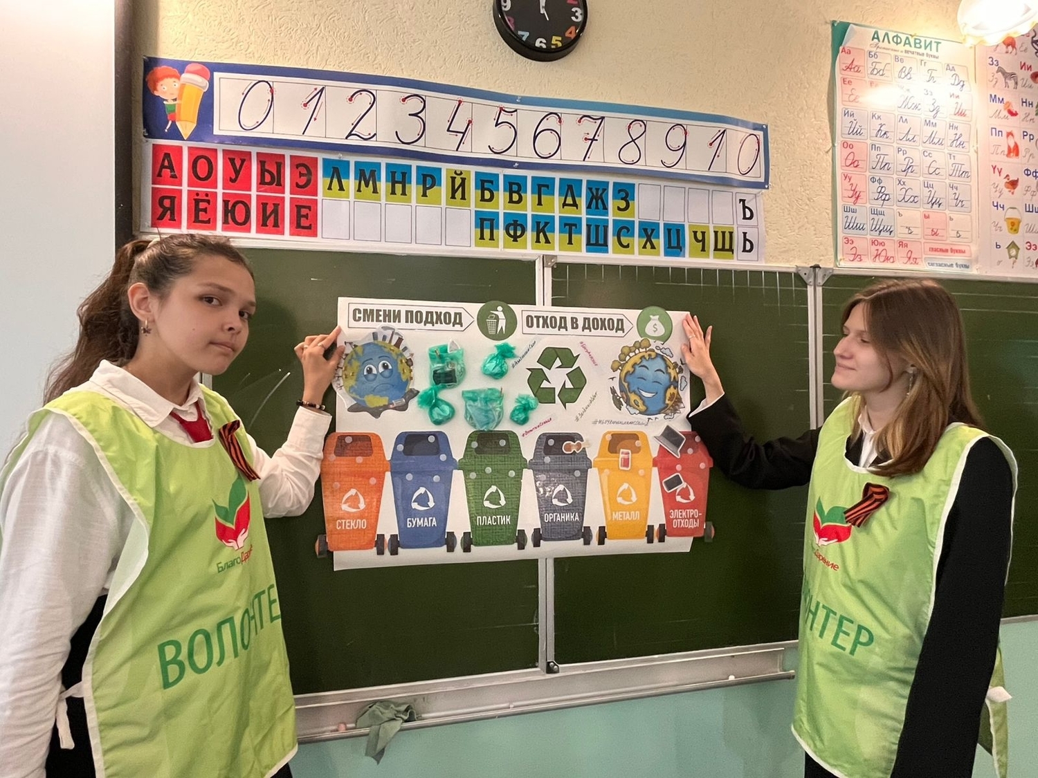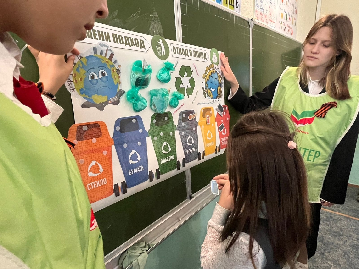 Теперь на переменах ученики начальных классов тренируют свои навыки раздельного сбора мусора