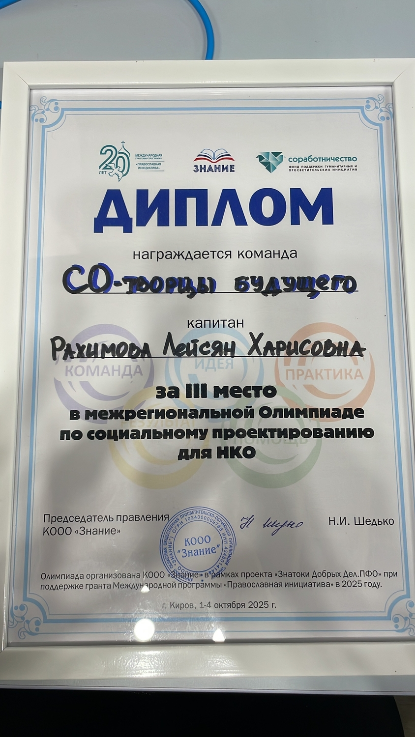 С огромной радостью и гордостью делимся потрясающей новостью! Наша команда «Со-творцы будущего» блестяще выступила на Межрегиональной олимпиаде по социальному проектированию среди НКО и завоевала ПОЧЁТНОЕ III МЕСТО! Урааа! Это настоящая победа!